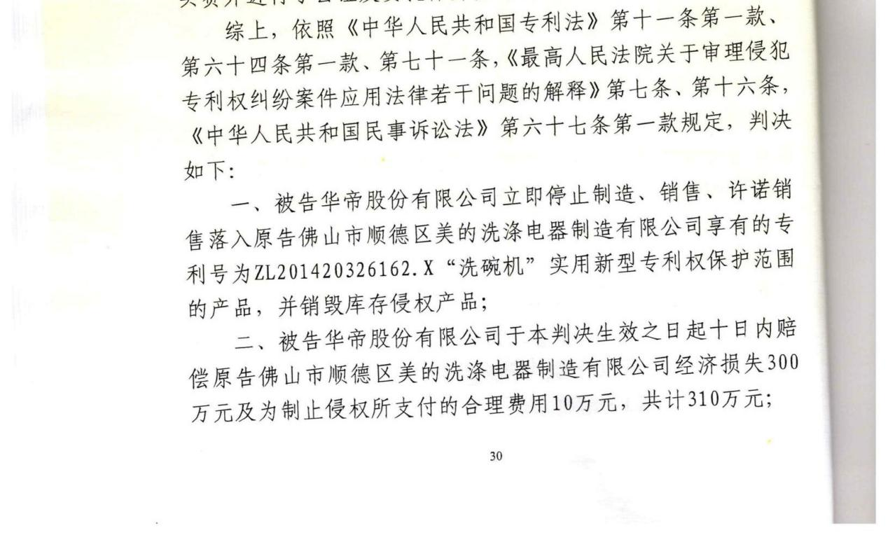 判賠310萬!美的洗碗機堅定維權(quán),華帝被判侵權(quán)又添新案(第四案)