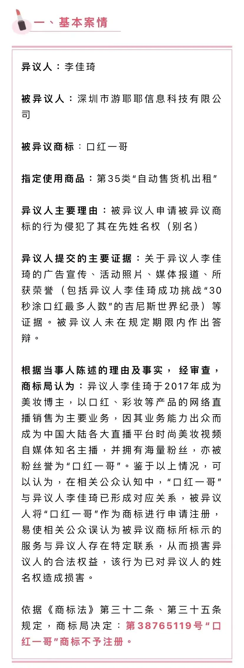 第38765119號(hào)“口紅一哥”商標(biāo)異議案