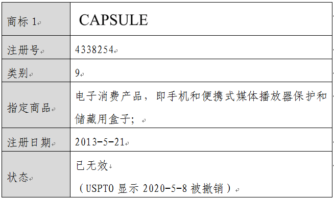 由于本案中涉及“capsule”商標的顯著性問題,因此將美國專利商標局對以下商標的審查情況列舉如下,僅供參考: