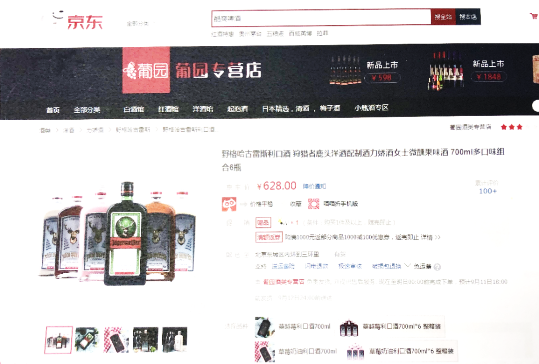 葡園公司京東店鋪截圖