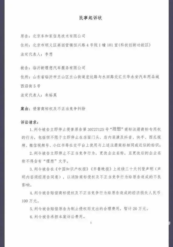據(jù)紅星新聞24日報道,山東臨沂從事汽車貼膜業(yè)務的“臨沂新理想汽車服務有限公司”,近日被理想汽車以“侵害商標權及不正當競爭糾紛”為由,起訴索賠共計120萬元,引起全網(wǎng)熱議。