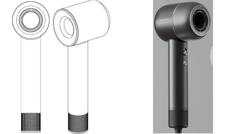 該案源于2019年,戴森公司認(rèn)為追覓公司生產(chǎn)銷售的“吹風(fēng)機(jī)”侵害戴森公司“吹風(fēng)機(jī)”外觀設(shè)計(jì)專利權(quán),因此提起訴訟,請(qǐng)求法院判令追覓公司立即停止制造、銷售、許諾銷售落入該專利權(quán)保護(hù)范圍的吹風(fēng)機(jī)產(chǎn)品,銷毀用于制造被控侵權(quán)產(chǎn)品的設(shè)備、模具、工具及庫(kù)存被控侵權(quán)產(chǎn)品的成品、半成品,賠償戴森公司經(jīng)濟(jì)損失人民幣100萬(wàn)元等。