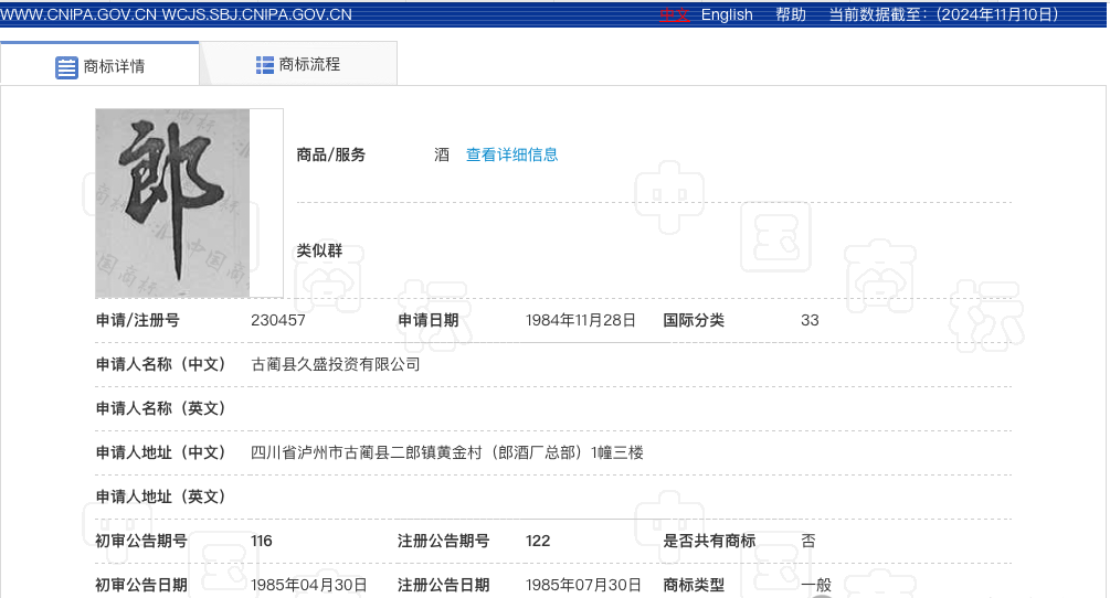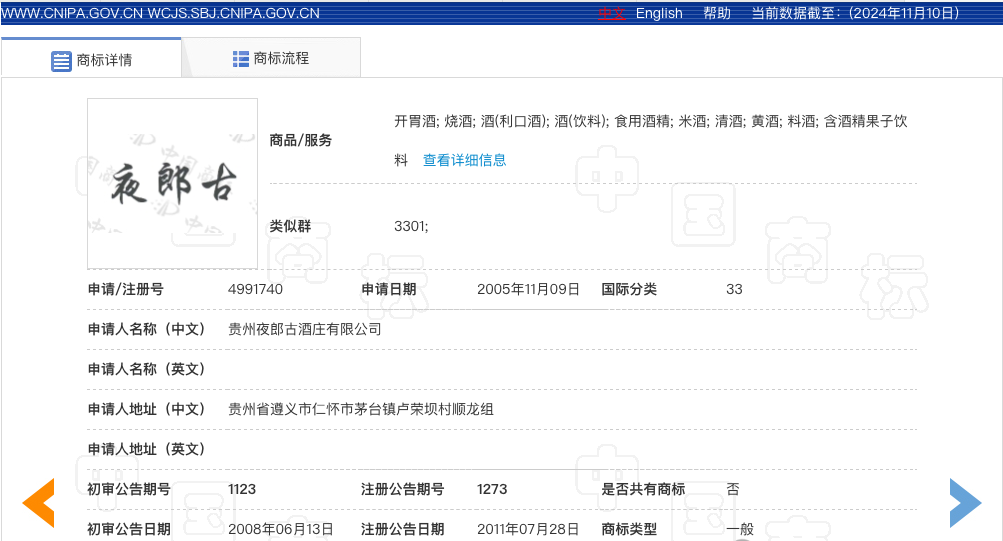 夜郎古酒莊繼續(xù)搶注帶“郎”商標,并逐步突破“夜郎”概念,向“郎”靠近; -