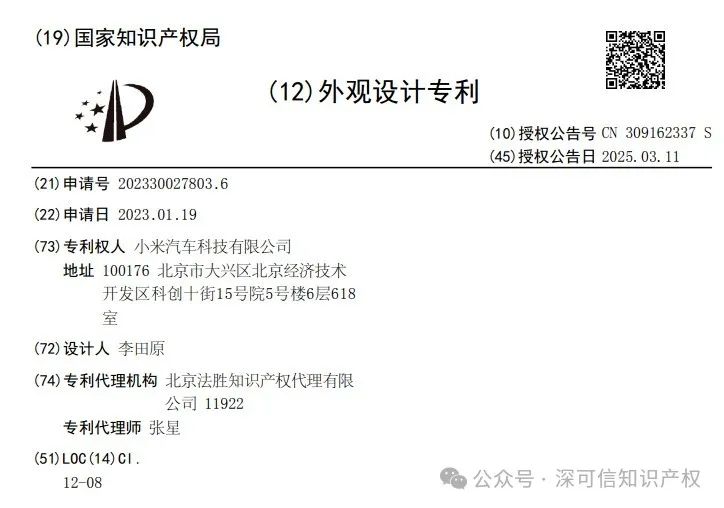小米SU7近百件外觀專利都是2023年初申請,2025年3月11日才授權公告!通常外觀專利的審查周期在6-8個月;小米SU7這么重要的專利布局,居然整體都用了兩年才授權公告?,F(xiàn)實中更多人選擇加快審查:優(yōu)先審查、加快審查,專利授權越快越好;但是小米SU7這次,選擇的是延遲審查!