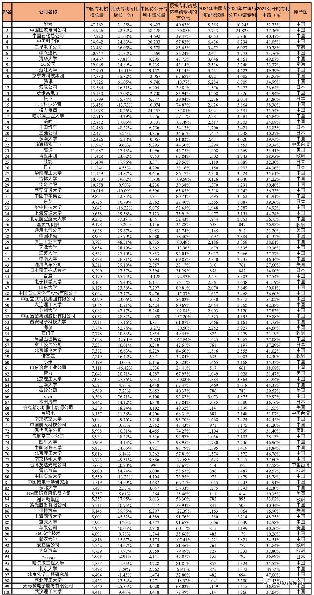 近日,英國《知識產(chǎn)權(quán)資產(chǎn)管理》雜志(Intellectual Asset Management,IAM)公布了“中國專利2021 TOP100”榜單,該榜單由我司Dolcera 多塞爾商業(yè)咨詢團隊合作推出, 從各公司在中國專利授權(quán)總量,活躍專利同比增長等多個維度進(jìn)行計算并得出排名。