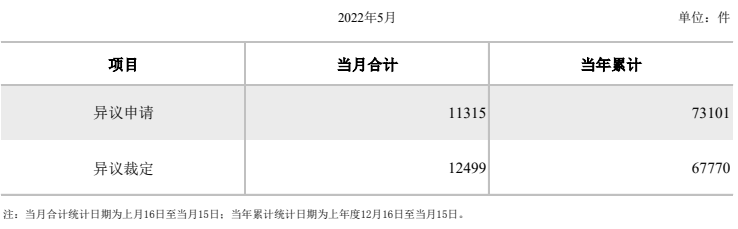 商標(biāo)異議業(yè)務(wù)統(tǒng)計(jì)表