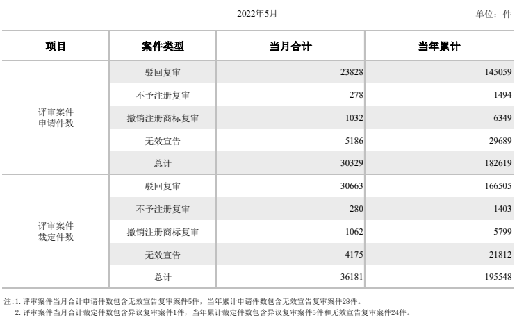商標(biāo)評(píng)審案件情況統(tǒng)計(jì)表