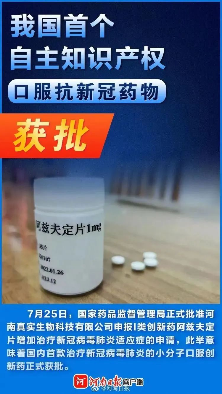 河南日報報道,國家藥品監(jiān)督管理局正式批準河南真實生物科技有限公司申報I類創(chuàng)新藥阿茲夫定片增加治療新冠病毒肺炎適應(yīng)癥的申請,此舉意味著國內(nèi)首款治療新冠病毒肺炎的小分子口服創(chuàng)新藥正式獲批。