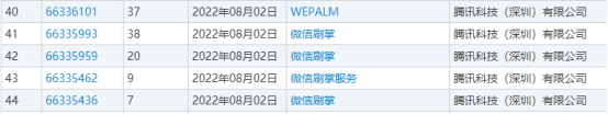 據(jù)商標(biāo)局官網(wǎng)顯示,騰訊科技(深圳)有限公司在2022年8月2號(hào),分別注冊(cè)了“WEPALM”“微信刷掌”“微信刷掌服務(wù)”等多枚商標(biāo),目前都處于等待受理中??磥?lái)是做好了要大力推行的準(zhǔn)備。不得不說(shuō),大廠就是大廠,十分懂得兵馬未動(dòng),商標(biāo)先行的道理。