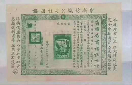 1923年5月,北洋政府農(nóng)商部商標(biāo)局為江蘇無錫茂新面粉廠頒發(fā)了“兵船牌”商標(biāo),也成了按照當(dāng)時頒布的《商標(biāo)法》辦理注冊的第一枚商標(biāo)。