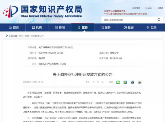 隨著國家知識產(chǎn)權(quán)局2021年10月12日在官方網(wǎng)站的第453號公告的發(fā)布,官方版紙質(zhì)商標(biāo)注冊證于2022年1月1日起徹底退出歷史舞臺,商標(biāo)注冊終于邁進(jìn)了電子發(fā)文時代,大大節(jié)省了人力成本,商標(biāo)注冊將更加高效便捷地有序進(jìn)行。這不但方便了大家,也是一種環(huán)保,全流程無紙化成功實現(xiàn)。