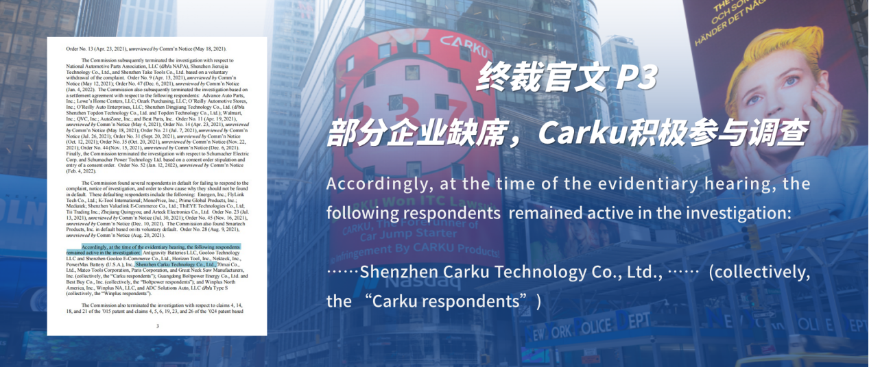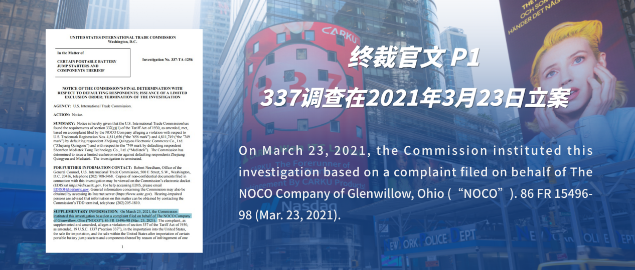 2022年8月29日,ITC法官發(fā)布終裁判決:維持初裁判決結(jié)論,即美國NOCO公司024專利不滿足國內(nèi)技術(shù)產(chǎn)業(yè)要求,卡兒酷不涉及對024專利侵權(quán)問題,即Carku產(chǎn)品不侵權(quán)。這意味著卡兒酷打贏了勝訴率僅5.2%美國“337調(diào)查”,即終裁獲勝。