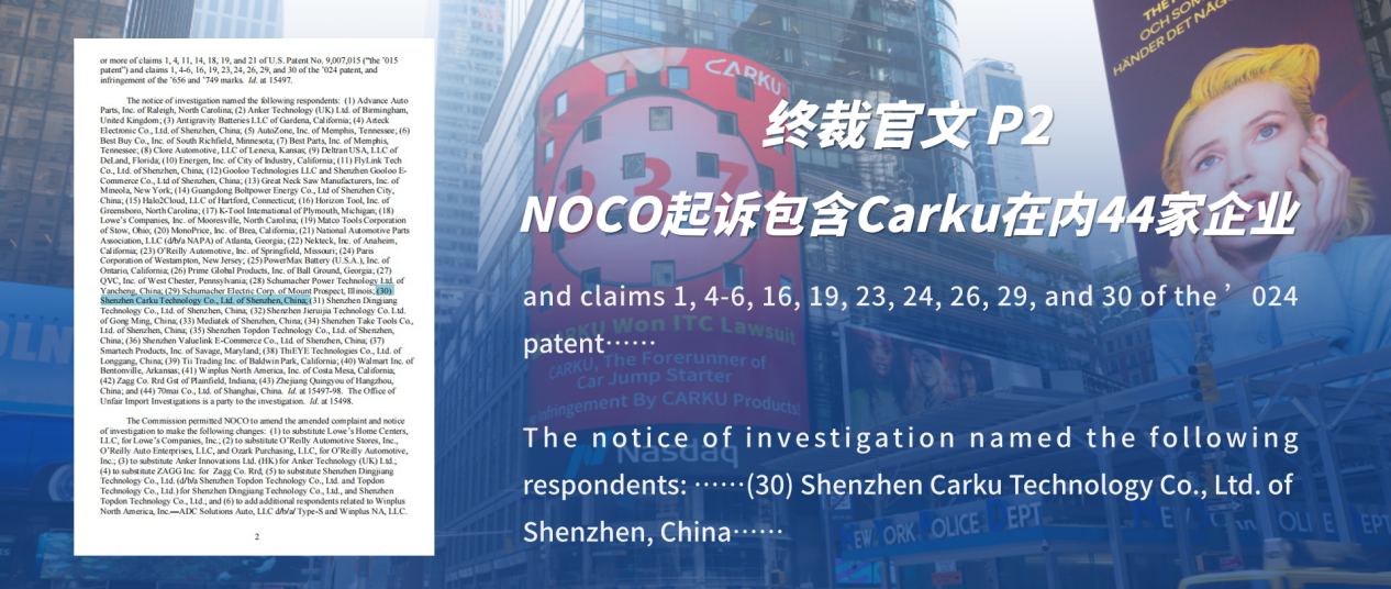 不過,在2021年3月ITC立案之前,美國NOCO公司撤銷了對66家企業(yè)的指控。此后,ITC調(diào)查涉及包括華思旭(Shenzhen Carku Technology Co., Ltd., 簡稱“Canku”)在內(nèi)的44家企業(yè),其中13家為中國企業(yè)。