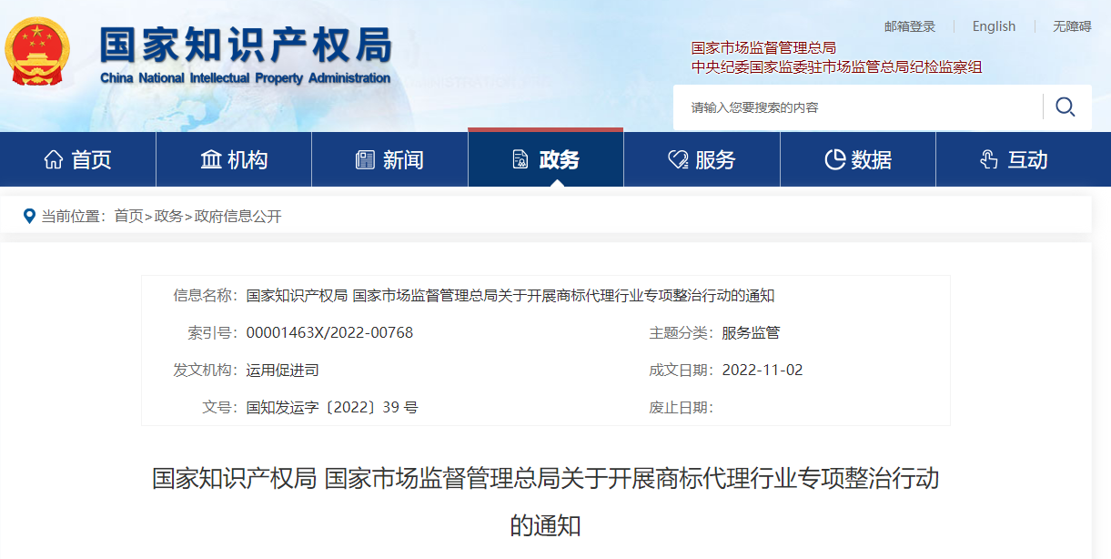國家知識產(chǎn)權(quán)局 國家市場監(jiān)督管理總局關(guān)于開展商標(biāo)代理行業(yè)專項整治行動的通知