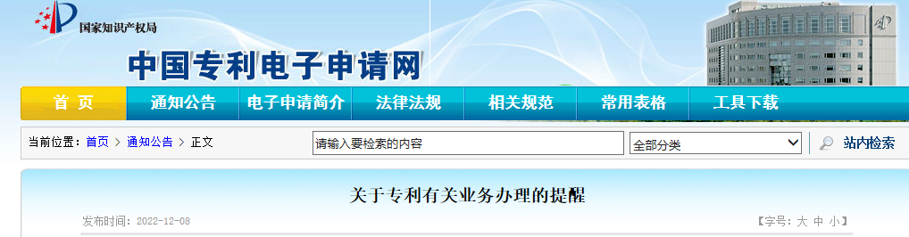 中國(guó)專利電子申請(qǐng)網(wǎng):關(guān)于專利有關(guān)業(yè)務(wù)辦理的提醒 ?