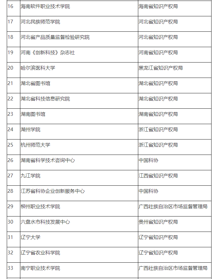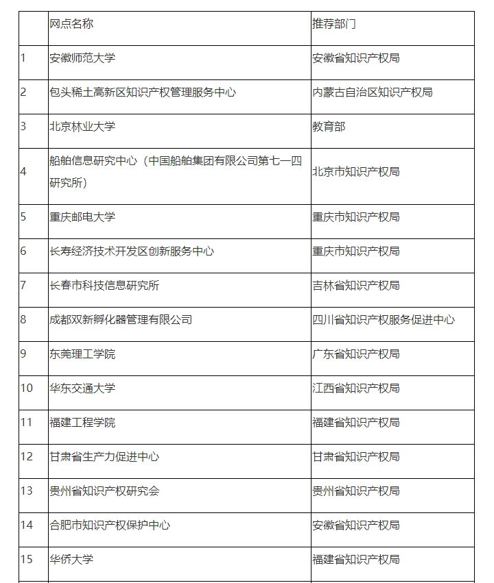 2022年度國家知識產(chǎn)權(quán)信息公共服務網(wǎng)點公示名單