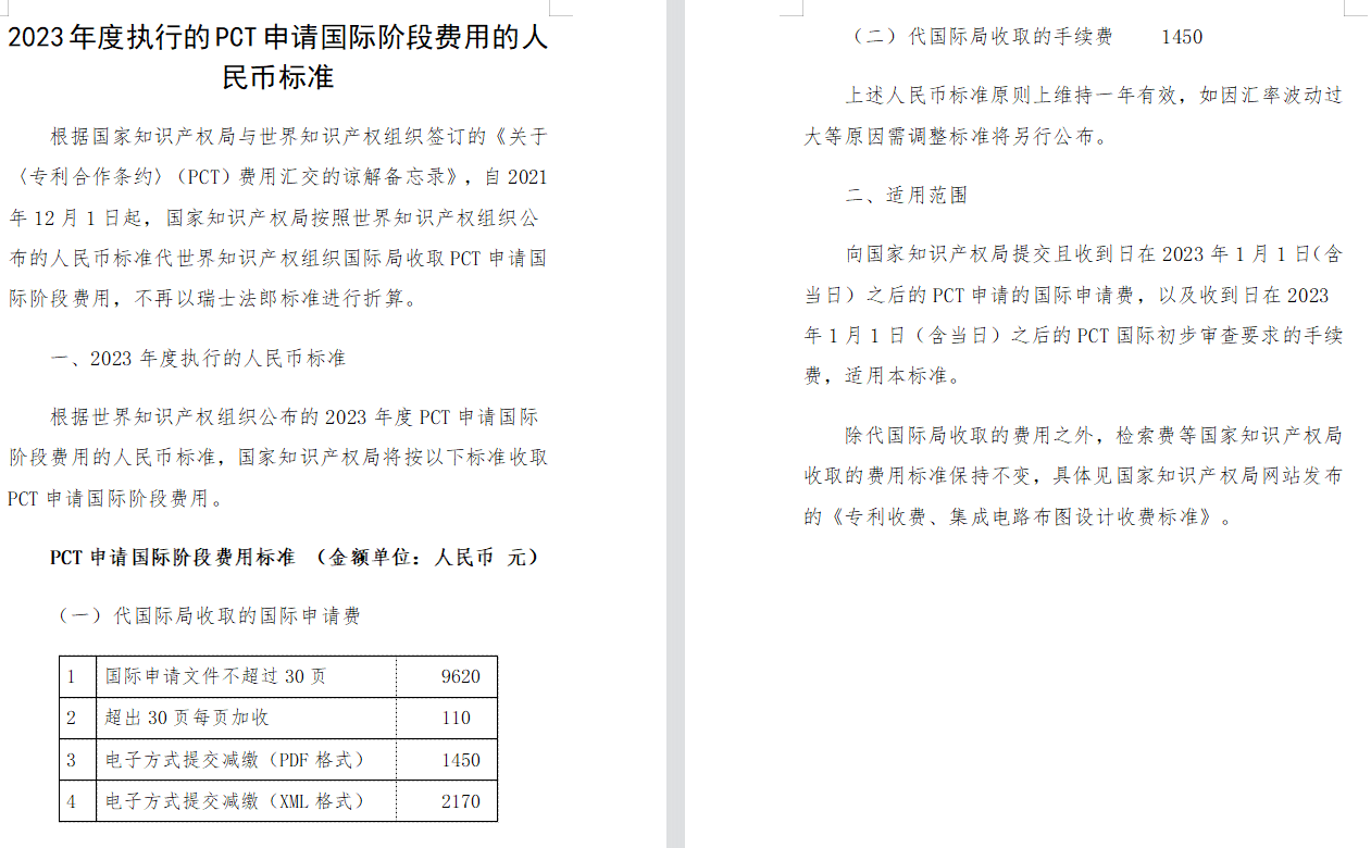 來了!2023年度執(zhí)行的PCT申請國際階段費(fèi)用的人民幣標(biāo)準(zhǔn)