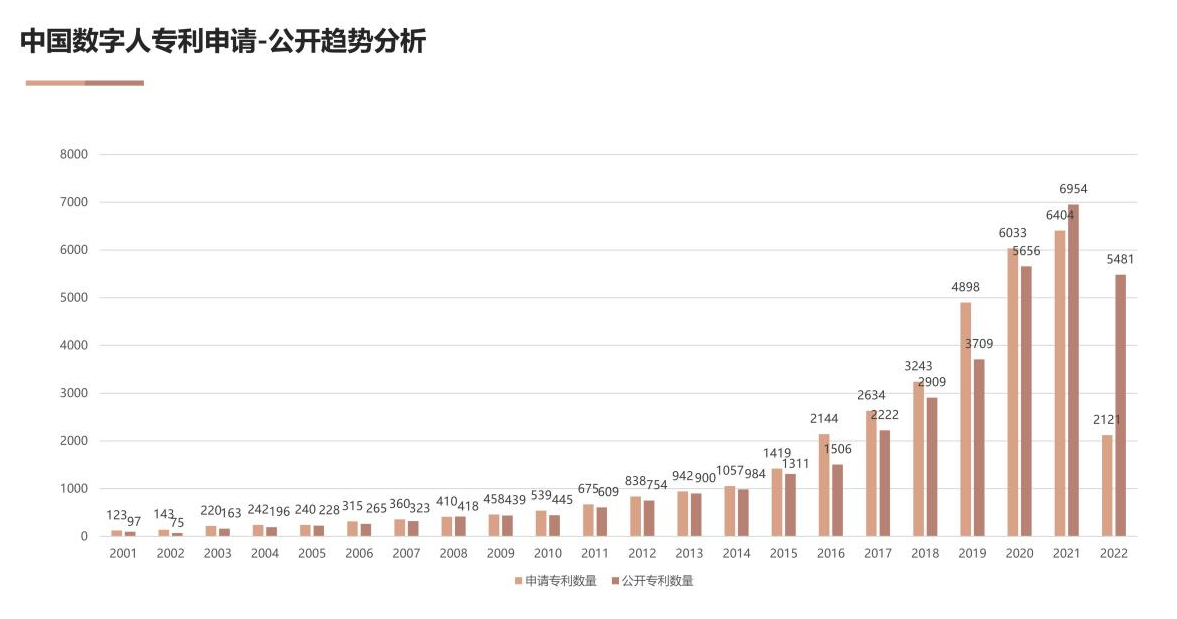 “智慧+”場景應用創(chuàng)造出更多產(chǎn)業(yè)增長點,新興人工智能技術生成數(shù)字經(jīng)濟發(fā)展新動能。AI在城市、交通、醫(yī)療、教育及工業(yè)等場景的融合應用加速,不斷催生新業(yè)態(tài)新模式新產(chǎn)業(yè)。以智慧工業(yè)為例,將工業(yè)互聯(lián)網(wǎng)、人工智能等在內(nèi)的智能制造新技術與工具,集成到工業(yè)生產(chǎn)流程中,正在引領我國工業(yè)數(shù)字化新生態(tài)。報告顯示,截至2022年9月,我國智慧工業(yè)領域申請專利共計65萬余件。百度公司以近9000件專利總數(shù)位居第一,國家電網(wǎng)位居第二,其余創(chuàng)新主體專利申請量差距不大,發(fā)展?jié)摿^強,各創(chuàng)新主體在智慧工業(yè)領域的專利布局積極競爭,難以拉開較大差距。與此同時,基于人工智能的深度學習、內(nèi)容生成,語音、視覺識別技術越來越成熟,以元宇宙和數(shù)字人技術為代表的新興技術,也迎來了專利的快速積累階段,百度、騰訊、華為等企業(yè)積極開展前沿專利布局,探索人機交互發(fā)展和應用,助力數(shù)字經(jīng)濟高質(zhì)量發(fā)展。