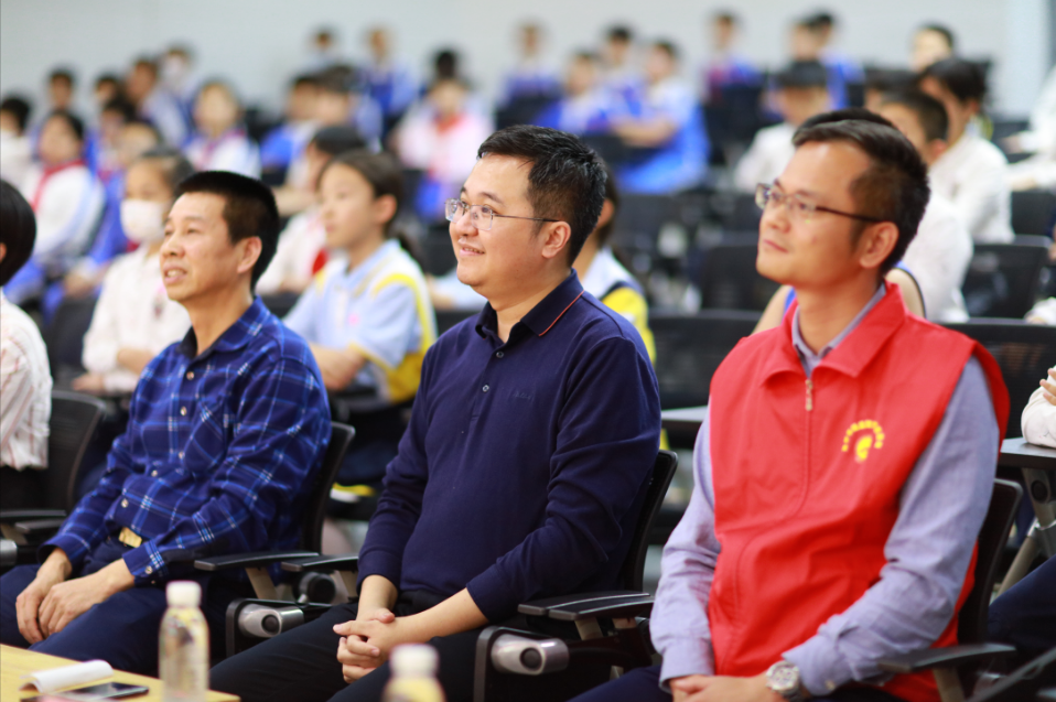左:龍華外國語學(xué)校副校長練國桃 中:龍華區(qū)知識產(chǎn)權(quán)科科長李功科 右:深可信知產(chǎn)授課講師俞兵
