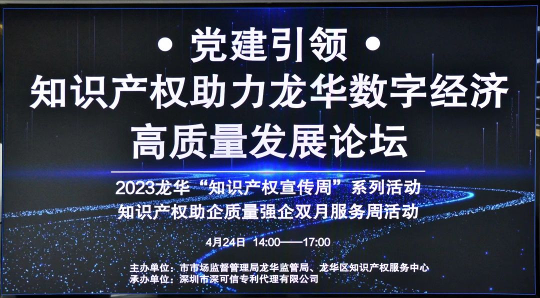 由市市場監(jiān)督管理局龍華監(jiān)管局、龍華區(qū)知識產權服務中心主辦,深圳市深可信專利代理有限公司承辦,于4月24日下午,在龍華區(qū)知識產權服務中心會議室成功舉辦2023龍華“知識產權宣傳周”系列活動——黨建引領·知識產權助力“龍華數字經濟高質量發(fā)展論壇”。