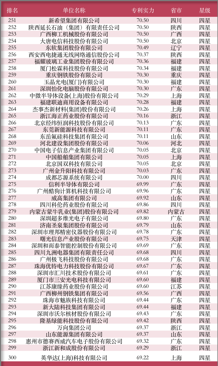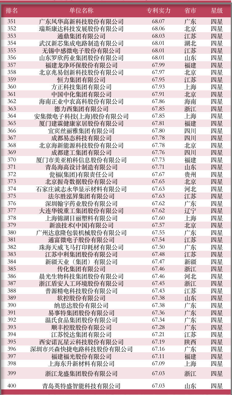 自2019年起,由華發(fā)七弦琴國家運營平臺出品的中國企業(yè)專利500強榜單已連續(xù)發(fā)布四年,旨在引導(dǎo)中國企業(yè)提升知識產(chǎn)權(quán)意識和能力,促進中國企業(yè)加強高價值專利培育和布局,樹立中國企業(yè)專利工作的標(biāo)桿和榜樣,推進知識產(chǎn)權(quán)強國建設(shè)。