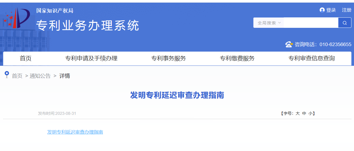 國(guó)家知識(shí)產(chǎn)權(quán)局于8月31日發(fā)布了有關(guān)發(fā)明專利延遲辦理的指南,從以下七個(gè)方面展開(kāi)介紹。